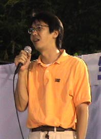 | 主催者側の青年のようだ。乾杯の音頭をとる。 |