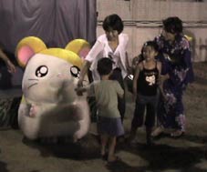 子供のためのハムスターのショーや写真撮影。最初の出し物が日本の着物のお嬢さんとは驚いた。 |