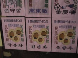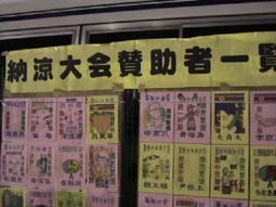 | 寄付を出した人の広告ビラが貼られているが、「商売繁盛」とかのことばで、あまり政治的なことばはない。 |