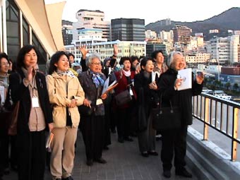 釜山港で礼拝。太陽が昇る、それに向かって、讃美歌を歌い、「オモニー!」と叫ぶ。 | ||||||||||||||||