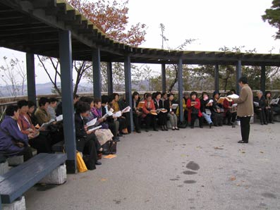 | 関西女性会(正式名では在日大韓基督教会関西地方教会女性連合会)が2002年10月22日から25日まで韓国訪問修養会を行った。参加者は関西の各教会から40名の女性が参加した。私達のオモニ、アボジまたはハルモニたちが日本に渡ってきた道を逆にたどってみようと、この修養会は計画された。プサン(釜山)から列車セマウル号に乗り、ソウルへ。そしてイムジンガン(臨津江)を挟んで「北」が見える統一展望台へ、と。私は、撮影係として参加した。 | |||