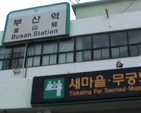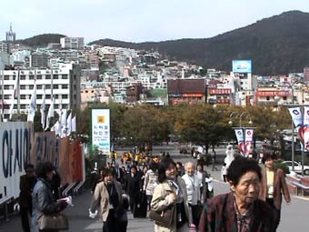 | 釜山駅前。釜山はちょうど神戸のように山が海の間近にせまり、市街地は坂が多い。 | ||||||||||||
