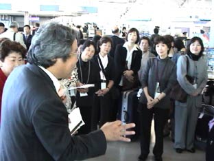 | みなさん、大阪関西空港に集合。 ライフツアーの西川さんより説明を聞く。 |