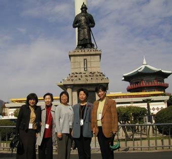 | イスンシン(李舜臣)将軍の銅像の前で。 | ||||||||||||