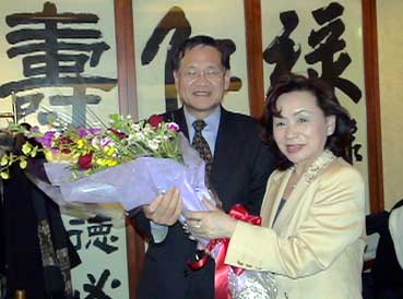 | 金教育官が帰国にあたり、その間ご苦労さんと花束を進呈。 | ||||||||
