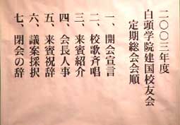 建国校友会の2003年度総会が、7月5日、南海サウスタワーホテルで行われた。