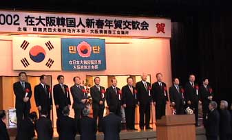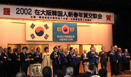 民団大阪2002新年会 2002年1月12日 。 恒例の民団と商工会議所主催の新年会が12日にありました。