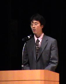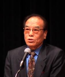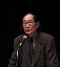 主催者側からの挨拶を述べる、金東勲先生 |