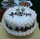 | ケーキのろうそくの火を吹いて消す。 | ケーキには5・16祝賀しますと書いてある | |||||||||||||||