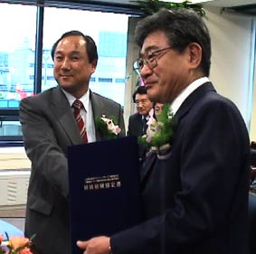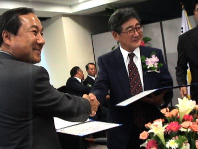 | 調印書を交換する、両理事長 | ||||||||||||||||