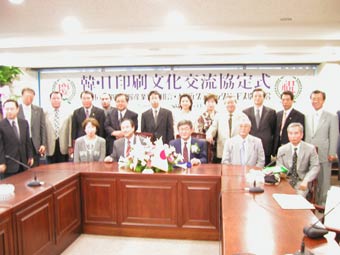 | 9月15日から3日間、大阪グラフィックサービス協同組合(OGS)の岡理事長をはじめ、メンバー10人が、ソウル軽印刷情報産業協同組合と、姉妹結縁を結ぶ為に、ソウルを訪問した。 16日午後5時半から、ソウルの中区にある印刷情報センターの講堂で協定の調印式が行われた。ソウル副市長や韓国の印刷関連団体の関係者が参加する中で、盛大に、本当に盛大に行われた。 9월15일부터 3일간 오사카그래픽서비스협동조합(OGS)의 오카 이사장을 비롯하여 회원 10명이 서울경인쇄정보산업협동조합과 자매결연을 맺고자 서울을 방문하였다. 16일 오후 5시반 부터 서울중구에 있는 인쇄정보센터 강당에서 협정의 조인식을 가졌다.서울부시장을 비롯하여 한국의 인쇄관련 단체 관계자가 참가한 가운데 성대히 정말 성대히 조인식이 거행되었다. |