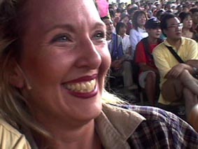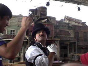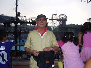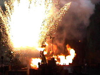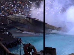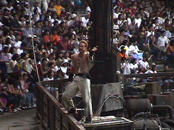 | ショーに出ている、スタッフの一人が私の隣に座った。カメラを意識したのだろう。 火薬や水を使って派手な演出を披露した。 |